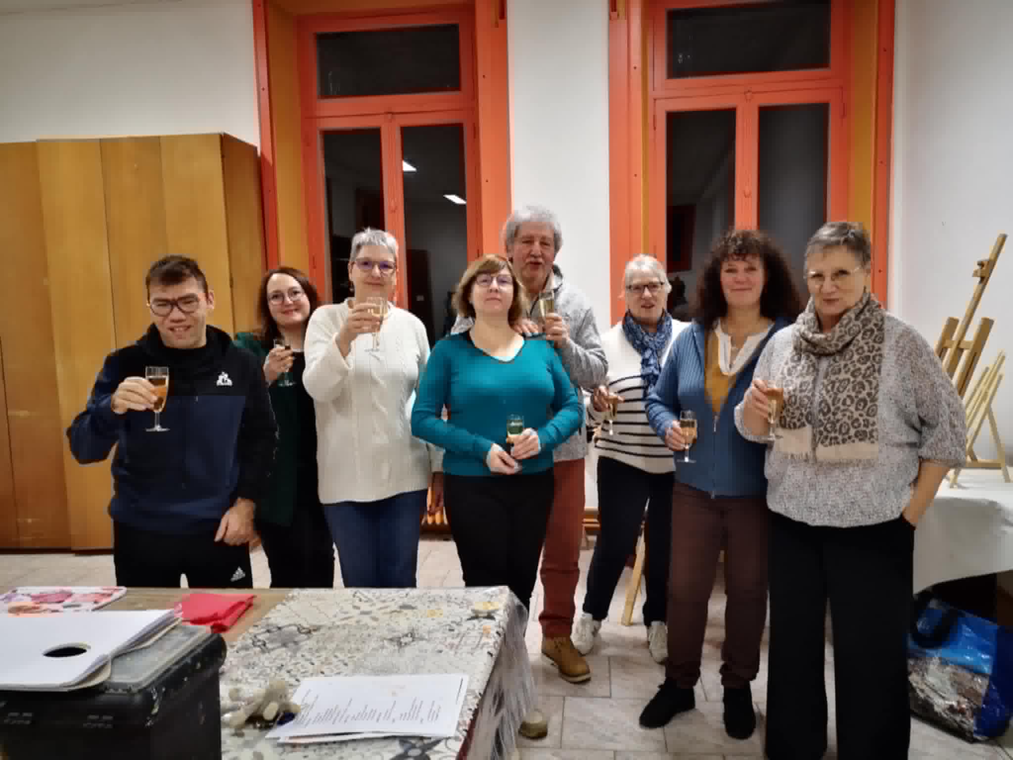 C'est autour d'un verre effervescent que les artistes de l'association "à la pointe du pinceau"